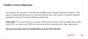 A dialog will appear confirming that your license version 1 has successfully been upgraded.