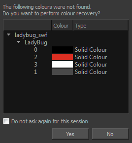 Default to Element Palette Lists: When this option is enabled the new, cloned, duplicated, imported and linked palettes will be stored in the Element Palette list instead of the Scene Palette List. Interactive Colour Recovery: If a colour palette required to display a drawing is not found because it was moved or deleted from its location, you will be asked if you wish to recover the missing colours into a new temporary palette. If this option is disabled, the colour recovery will happen automatically without your confirmation.