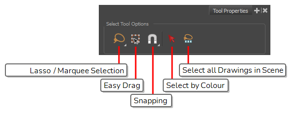 When you use the Select tool, its properties and options appear in the Tool Properties view.