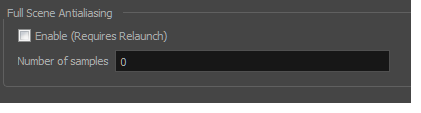 NOTE Full Scene Antialiasing parameters are only valid while you work in your scene. The scene will be rendered to 100% of its resolution regardless of your preference settings or graphic card panel.