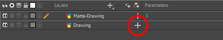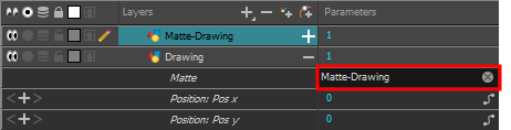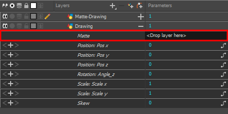 The drawing layer's parameters appear below it. The first parameter is the Matte parameter, which allows you to use another layer in your scene as the drawing layer's matte.