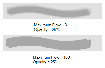 • Maximum Flow: Sets the maximum rate at which colour and texture are applied as you create a fluid stroke.