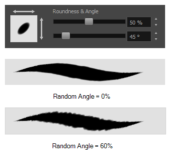 The Roundness and Angle parameters allow you to change the shape and orientation of the tip.