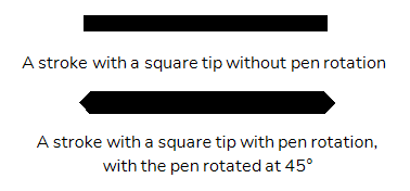 • Heading: The orientation of the brush tip is determined by the direction in which the stroke is drawn. It changes dynamically as the stroke is drawn.