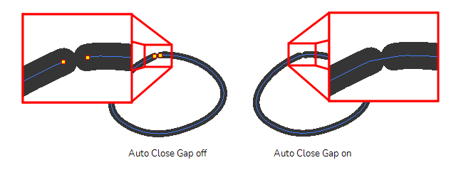 When enabled, small gaps between the pencil lines you draw will be closed by an invisible stroke to make sure your shapes are closed and that they can be filled with the Paint tool.