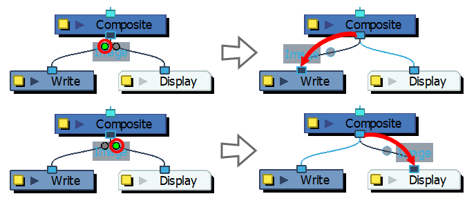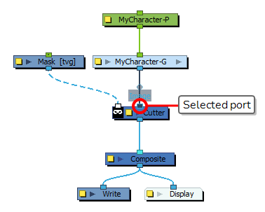 To navigate between different ports on the same side of a node, press the Left Arrow and Right Arrow keys.
