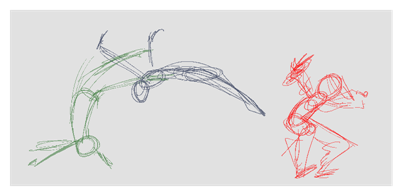 For a satisfactory animation, start by animating the main action with quick, rough sketches, then add the details when you're satisfied with the movement. If you start animating all the details right away, you will lose a lot of time if you have to make corrections, and your animation is likely to look rigid.
