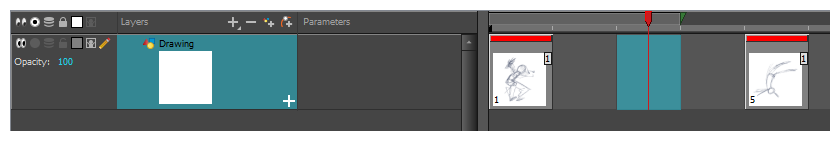 - In the Xsheet or Timeline view, identify the drawing as a key drawing.
