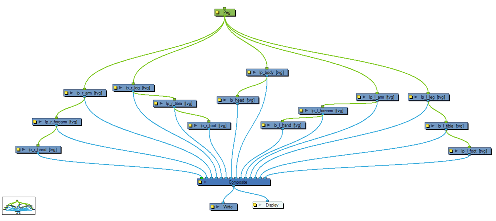 The Node view is a visual representation of how every element in your scene, be it drawing layers, pegs, effects and others are combined together to form the final composited image. It allows you to rig the elements in your scene together and add a wide range of effects to your scene. Getting to know how to use the Node view is important especially for rigging cut-out models, adding effects to scene or managing the way your scene is composited, rendered and displayed in Harmony.