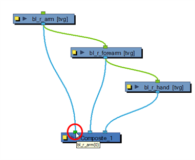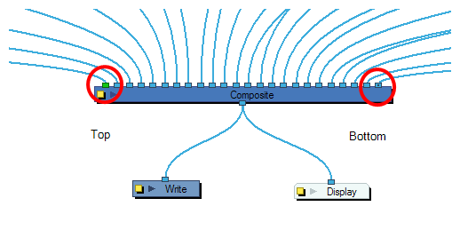 The Composite node ordering corresponds to your timeline ordering unless the Node view's organization is too complex for the Timeline view to display. The element connected in the left-most port of the Composite node is displayed in front in the Camera view and the one connected in the right-most port is displayed behind.