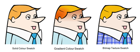 You can use several different types of colour swatches, including solid colour, gradient colour and bitmap texture swatches.