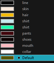 The default colour is also the colour used when you choose to vectorize images you're scanning into your scene, however you add the Default colour swatch to your palette in a different way, so it's unique. It has a unique ID number that makes it easily recognizable from all the other colours in your colour palettes. Being able to change this colour allows you to change the basic colour of all scanned drawings. This can be useful on more than just an aesthetic level as sometimes when you go to NTSC or PAL, pure colours, such as pure black, can create problems.