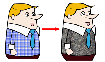 You can also replace a texture once it is painted. If you decide to make the character’s shirt wool instead of plaid, just update the texture file in the swatch and the entire project updates. Any transformation previously applied to the texture’s position in your drawings will be kept.
