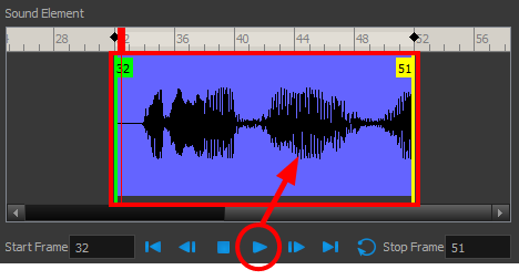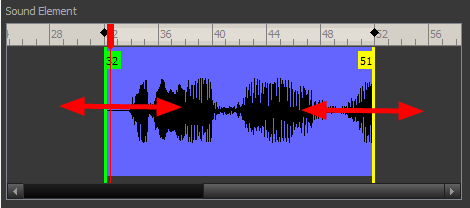- Drag the start or end range markers in the Sound Element section to the boundary frames you want.