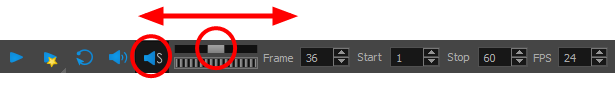 - In the Playback toolbar, you can use the jog slidder to playback forward and backward subsequent sound frames. This allows you to do a more fluid scrubbing.