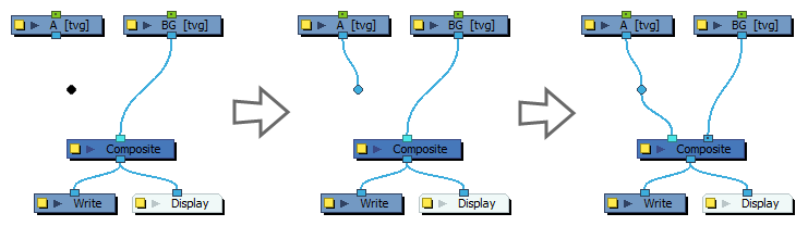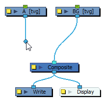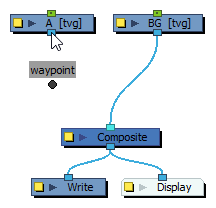 If you created a free waypoint, you need to create its incoming connection first, then its outcgoing onnections after. You must follow this order. Connecting a node to a waypoint is done the same way as connecting a node to another node. However, to connect a waypoint to a node, you must press and hold the Shift key while clicking and dragging on the waypoint to create an output cable.
