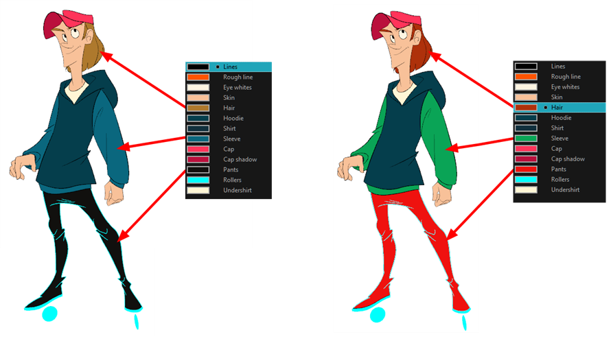Toon Boom Harmony has some very powerful painting features to add colour to your drawings. Whereas some other software only allow users to work with one colour swatch at a time, painting in Harmony is done by using palettes containing multiple colour swatches that can be saved and reused as needed.