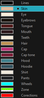 Another advantage of this system is that you can create complete palettes for different lighting situations. For instance, in addition to the regular palette for a character, you could have one for that character in the rain using colours that are duller and less vibrant than the dry daytime colours, or yet another for using in a night scene. Using palettes linked to your character in this way allows you to instantly change its colouring to suit the mood and atmosphere of the scene without having to repaint each element.