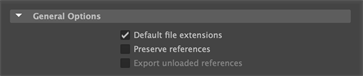 - In the General Options section of the Options panel, uncheck the Preserve references checkbox to ensure all references are included.