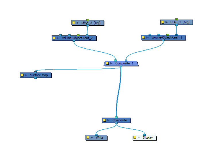 Connect the output port of the Ambient Occlusion node to the scene’s main Composite node, left of the port connecting that Composite node to the Composite that combines your Volume Object nodes. This will ensure that the shading effect is applied on top of the artwork.
