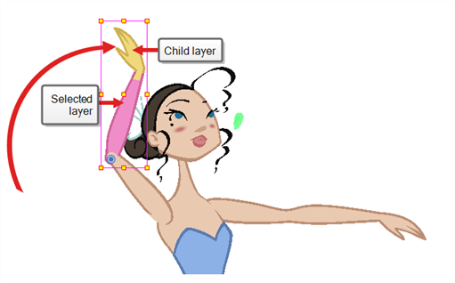 Harmony also has commands and keyboard shortcuts to quickly change your selection from the currently selected layer to its parent, its child or to one of its siblings, allowing you to quickly navigate your character's hierarchy from one layer to one of its related layers.