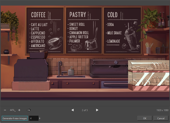 You may also generate multiple outputs at once from the dialog. You can select a number from the number box and click the Generate New Images button.