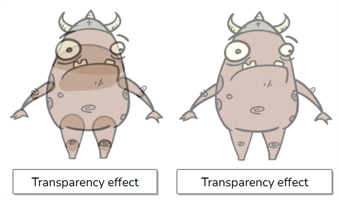 Groups can also be useful if you need to apply the same effect to several layers at once. For example, if transparency is applied to each individual layer making a character rig, the seams between its body parts will become visible. Instead, if you group all of the rig's layers together, then add a Transparency effect to the group, Harmony will compose the layers inside the group into a single image before applying the effect.