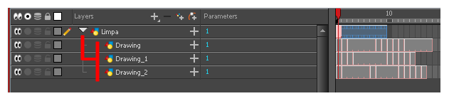 You can also expand a symbol within a group to avoid crowding the timeline with a series of layers. When you expand the symbols, the layers will be contained in a group node that you can expand to see the content.