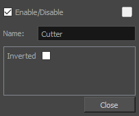 Like all effects that use a matte, the Cutter's effect has an Inverted parameter, which is disabled by default. When enabled, the Cutter will have the reverse effect: Instead of cutting the matte's shape out of the drawing, it will cut everything outside of the matte's shape out of the drawing, leaving only the parts of the drawing that are covered by the matte.