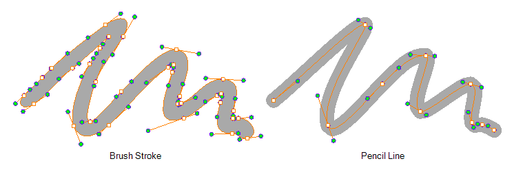 Since pencil lines are defined by a single line with a line width, you can use the Contour Editor to easily modify the shape of pencil lines. In contrast, brush strokes are full vector shapes, so the Contour Editor can be used to modify their shape.