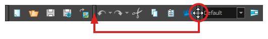 • Workspace toolbars are toolbars that have a general purpose. For example, the File, Edit, Workspace and Deformation toolbars at the top, as well as the Tools toolbar on the left, are workspace toolbars. Those toolbars can be placed at the top, bottom, left or right edge of the application window. They can also be placed at the edge of specific views if preferred.