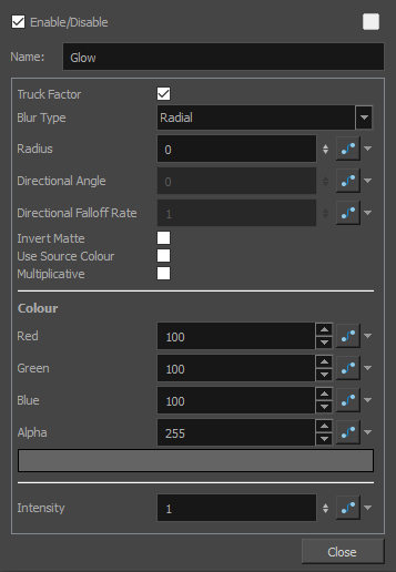 Allows you to set the factor by which to multiply the intensity of the effect. This parameter can take a decimal value between 0 and 1. At 1, the effect is fully applied. At 0, the effect is not visible. |