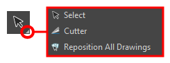 By default, the Tools toolbar hides some of its tools inside pop-up menus. For example, to select the Cutter tool, you must double-click or long-click the Select tool button, and select Cutter in the pop-up menu.