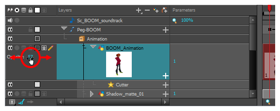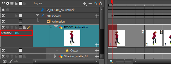 If you need specific layers to appear semi-transparent, you can quickly set a drawing layer's opacity parameter directly in the Timeline view.