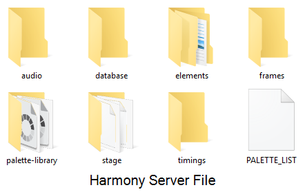 A Harmony project is composed of several files. The drawings and colour palettes are not embedded in the project. They are separate linked files. Therefore, if you want to archive or share a project, you require all the files contained in the folder structure.
