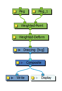 The Weighted-Point node allows you to make deformations using a series of unconnected pegs that you may assign weight to. The main difference between the Weighted-Point node and the Weighted-Deform node is the Weighted-Point node allows you to that you further customize the influence of deformations by specifying weight values to each peg.