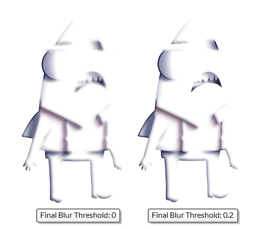 In order to separate different surface elevations, the final blur threshold defines a bucket-range in which the shadows are separated and blurred together. This can be used to keep certain edges of the cast shadow sharp, and other areas blended.