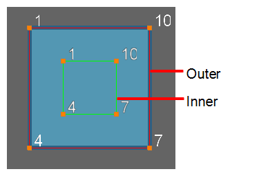 When enabled, the matte's Inner Contour and its controls display in the Camera view, and the Inner Contour can be modified. NOTE A matte always has an outer contour and an inner contour. By default, both contours are merged together, having the same shape and points, allowing you to animate them simultaneously as if the matte had a single contour. You can separate the points of the inner and outer contours by hiding one of the contours and making modifications on the other contour.