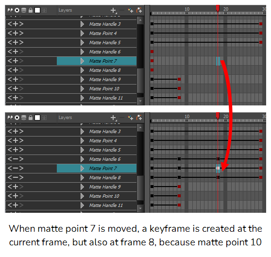 NOTE Contrary to tools like the Contour Editor, you cannot use a keyboard shortcut to click and add a point to a matte contour.
