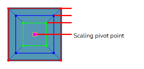 When enabled, moving one of the control points of the matte contours will scale the entire matte. A purple square will appear in the middle of the matte's contour. Moving this square will change the position of the pivot point used for scaling the contour.
