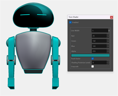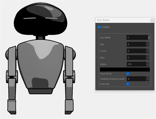The Toon Shader is an effect that can be applied to a 3D object. The intention of this effect is to make your 3D objects appear 2D so that they integrate more seamlessly into your 2D scene.