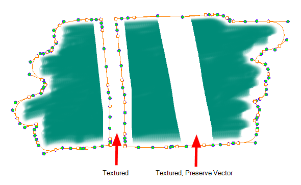 There are two different types of textured vector erasers: Textured and Textured, Preserve Vector. A simple textured eraser will do two things: First, it will make textured brush strokes more or completely transparent where you erased, and second, it will cut out from the brush stroke's vector shape where it made its texture completely transparent. In contrast, a Textured, Preserve Vector-type eraser will only make the texture brush strokes more or fully transparent, but will leave its vector shape intact.