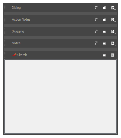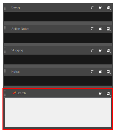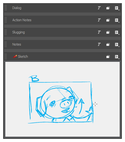 Like other panel captions, sketch captions are specific to each panel. However, contrary to text caption fields, sketch caption fields are not added to your project. They are added to a panel.