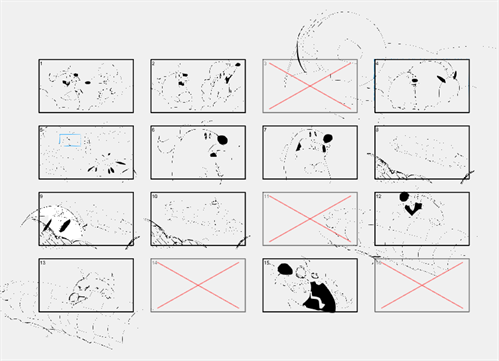 The Thumbnailing Page is a special drawing layer where you can sketch thumbnails into prepared numbered panels. These panels are proportional to the project’s scene resolution. The Thumbnailing Page is ideal for sketching out concepts and ideas as all your drawings can be made on a single prepared drawing layer with a proportional guide to draw in.