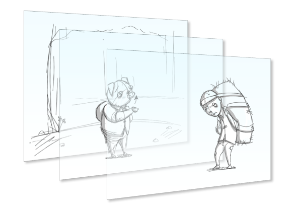 Storyboard Pro allows you to work with layers. Each panel in your project has its own list of layers, each of which can contain a separate drawing.