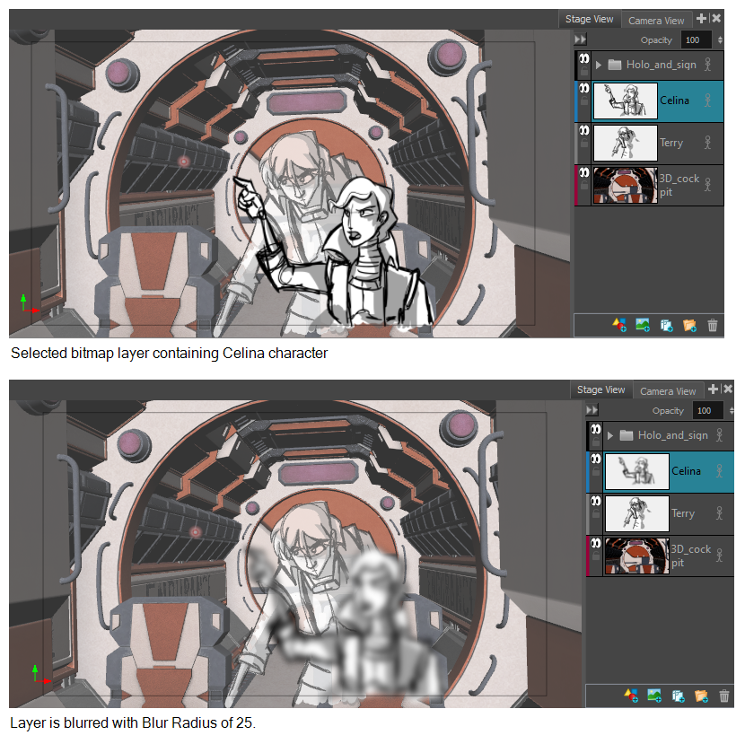All the blur effects (Blur, Radial Zoom Blur and Directional Blur) can be applied to both vector and bitmap layers. If you want to apply an effect on a vector layer, it will be converted to a bitmap layer after you confirm the effect.