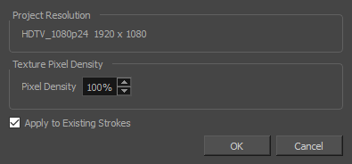 - If your layer already contains textured brush strokes, and you want the texture in these brush strokes to be resampled to fit this new Pixel Density setting, check the Apply to Existing Strokes option.
