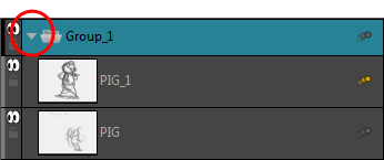 When you group selected layers, they become the sub-layers of the group layer. The first newly-created group layer is named Group. Subsequent group layers are appended with a number. For example, Group_1. The number increments with each new group layer you create. The selected group layer is highlighted in blue and its sub-layers are displayed below.