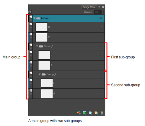 Within a group layer, you can create sub-groups to further streamline your work, and rename them to suit your project