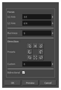 Lets you select a custom blur direction. Create your own blur by entering a value for the direction of the blur lines. |